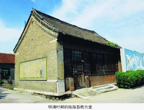 县衙 距县衙不远路南是文庙,布局完整、巍峨雄伟。万历四十六年(1618年),由临淄知县李长春重建。其南临庄岳街,前为照壁,东西列下马坊,题曰“崇正学”、“育真才”。北为棂星门、“德配天地”坊、“道贯古今” 坊;内为泮池;又北为大成殿;殿中供奉孔子牌位,两侧供奉四配、十二哲牌位,殿前东、西庑供奉诸先贤先儒牌位。大成殿前大成门东有名宦祠,西有乡贤祠、忠义孝悌祠;大成殿后有明伦堂、尊经阁、崇圣祠。 县学在文庙东;魁星阁在文庙东南,始建于明末;文昌阁在南城上。目前这些建筑已不存。 出临淄县衙顺东西大街东去约300米,便是城隍庙街,顺街北去便是城隍庙遗址。城隍庙于明万历四十六年(1618年)迁建于此,占地约二十亩。1938年秋,被烧毁。 御赐齐佳士石牌坊位于县城南门大街中段。此坊建于清朝乾隆五十五年(1790年),造型宏伟,古朴大方,是乾隆皇帝为嘉奖当时年逾八旬的老臣齐佳士敕令修建的。齐佳士,清代乾隆年间临淄南门村人,时任秦州(甘肃天水)知州。牌坊上方正中刻有“圣旨”二字,两侧各有一石匾。乾隆御笔题字,一侧曰:“保赤钟祥”,一侧曰:“七叶衍祥”。全牌坊雕刻着十三条龙,四条盘龙石柱直径近一米,在柱底部均以刻有云朵的巨石护持。此坊于1966年初被毁。 关帝庙,在县城东门外。始建年代已不可考,清代每年春秋致祭于此,于抗日战争中被毁。 西天寺,在县城西关北。该寺为十六国后赵皇帝石虎(334年-349年在位)所建,名为兴国寺。北魏时期,统治者又在寺后修建大石佛(现大石佛存于临淄石刻艺术馆中)。宋代更名为广化寺,元顺帝至正年间(1341年-1370年)被毁。明代初年,在广化寺旧址重新建寺,更名西寺,又名西天寺。明神宗万历年间(1573年 - 1620年),太师李良监理重修。该寺规模广阔,建筑宏伟。寺内正殿九间,砖木结构,红砖绿瓦、飞檐斗梢,巍峨壮观。院内钟楼,悬一口高约2米的铁钟,每当破晓,沉重浑厚的钟声响彻云霄,声音远达方圆十余里外,临淄八景诗中所谓“西寺楼头听晓钟”之句,就是指此。1938年,西天寺僧舍殿堂被毁;文革时期,碑塔造像遭破坏。