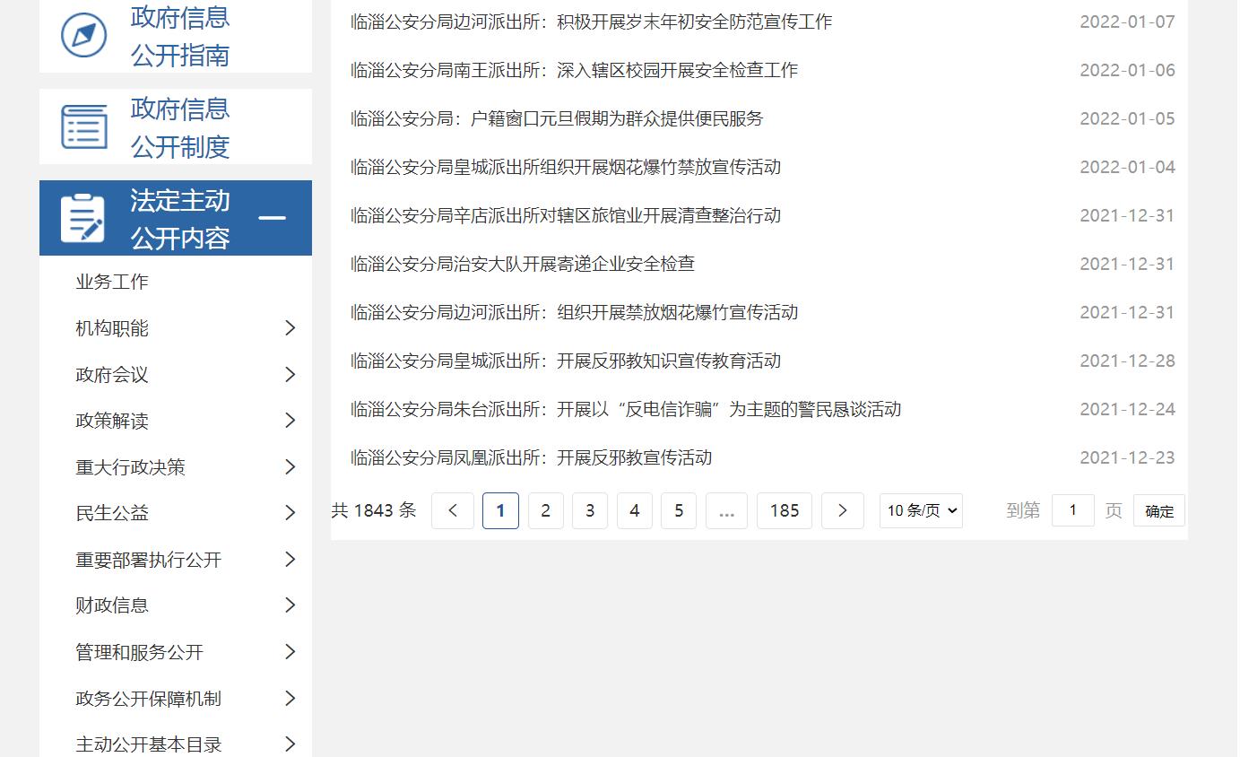 2021年,临淄公安分局认真贯彻落实《中华人民共和国政府信息公开条例》,建立工作网络,健全运行机制,保证了政府信息公开效果。通过政府网站信息公开平台和本单位网站以及新闻媒体、公告栏等多种形式,及时、全面、有效地主动公开政府信息,为广大公众提供了比较好的政府信息公开服务。