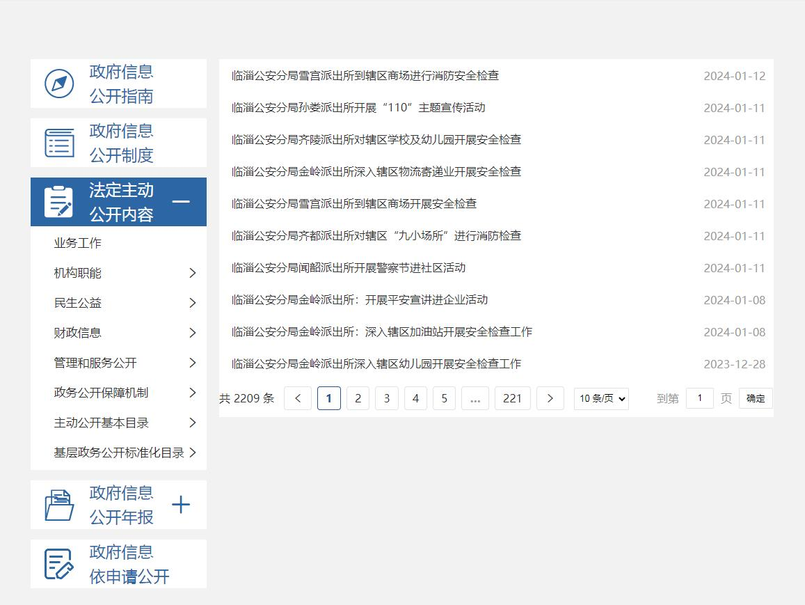 2023年,淄博市公安局临淄分局认真贯彻落实《中华人民共和国政府信息公开条例》,完善公开平台建设、筑牢公开基础保障等工作,更好发挥以公开促落实、强监管、优服务,为服务保障政务公开工作高质量发展作出新贡献。