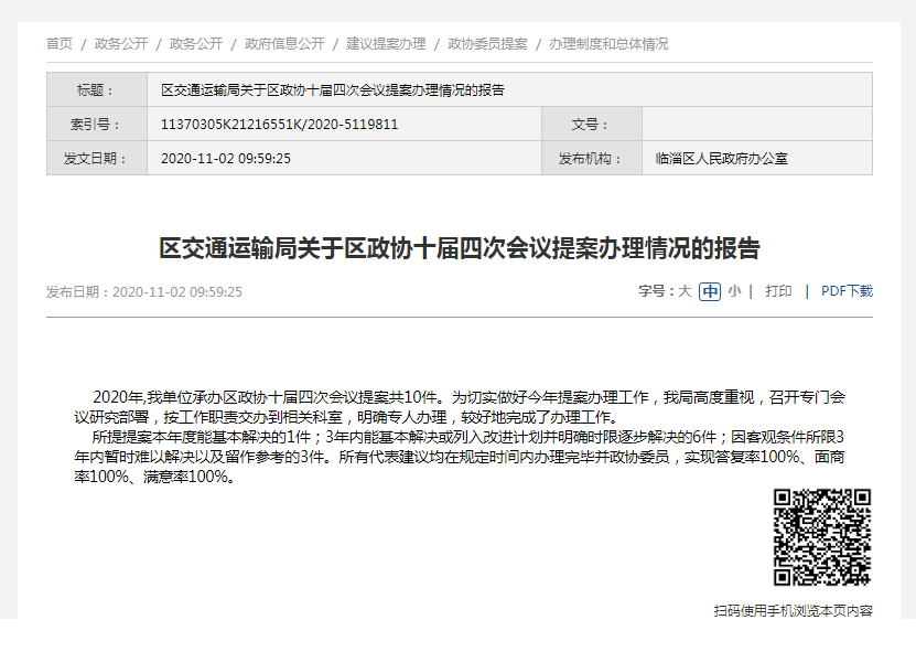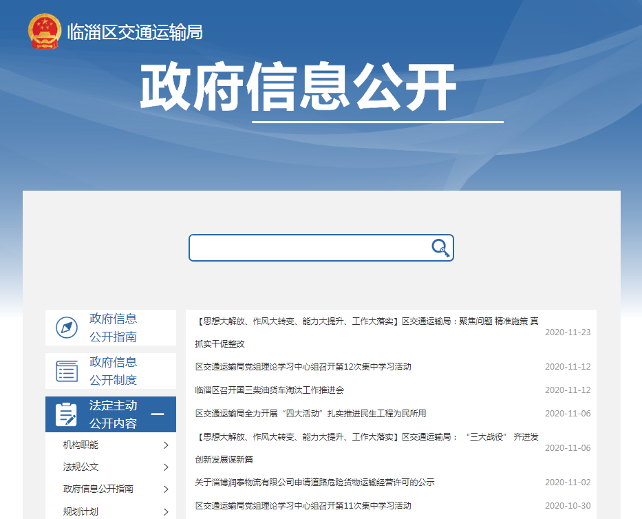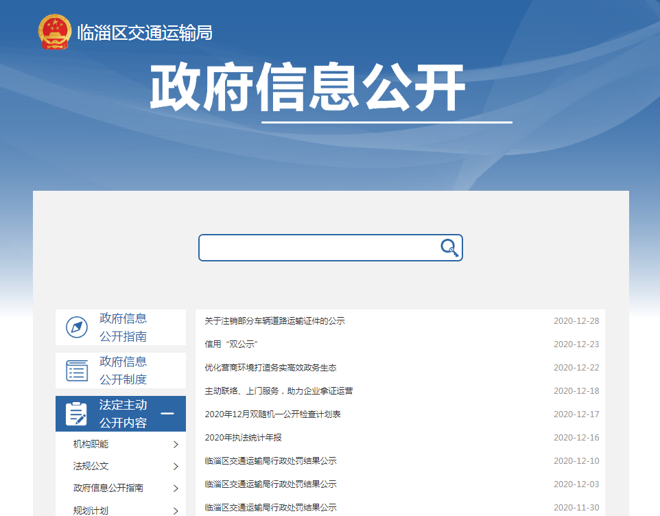 截至2020年年底,区交通运输局主动公开信息396条。全文电子化率为100%。其中,本单位微信公众号公开135条;临淄区人民政府网站公开261条。