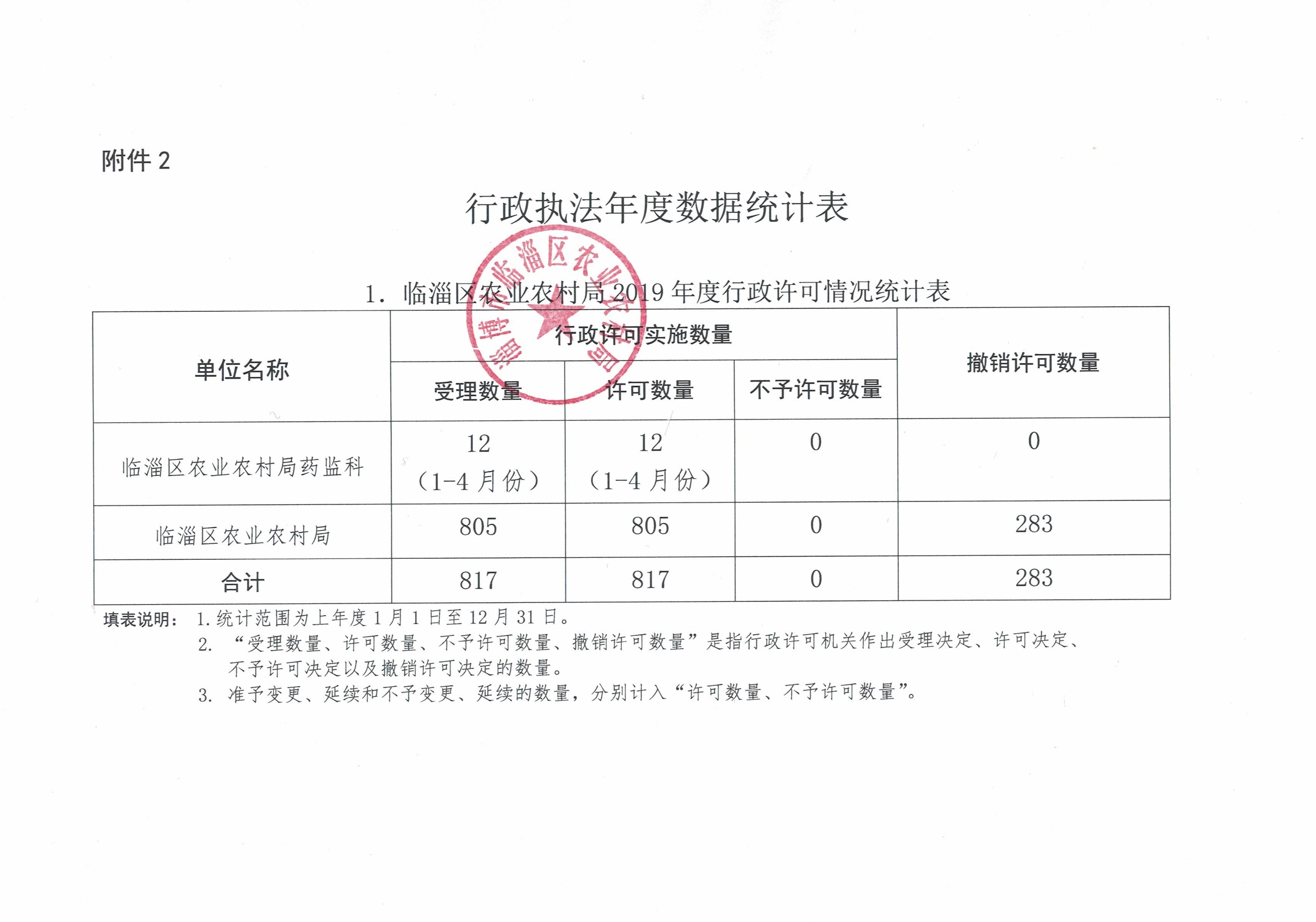 临淄区农业农村局2019年度执法统计年报(行政许可情况)