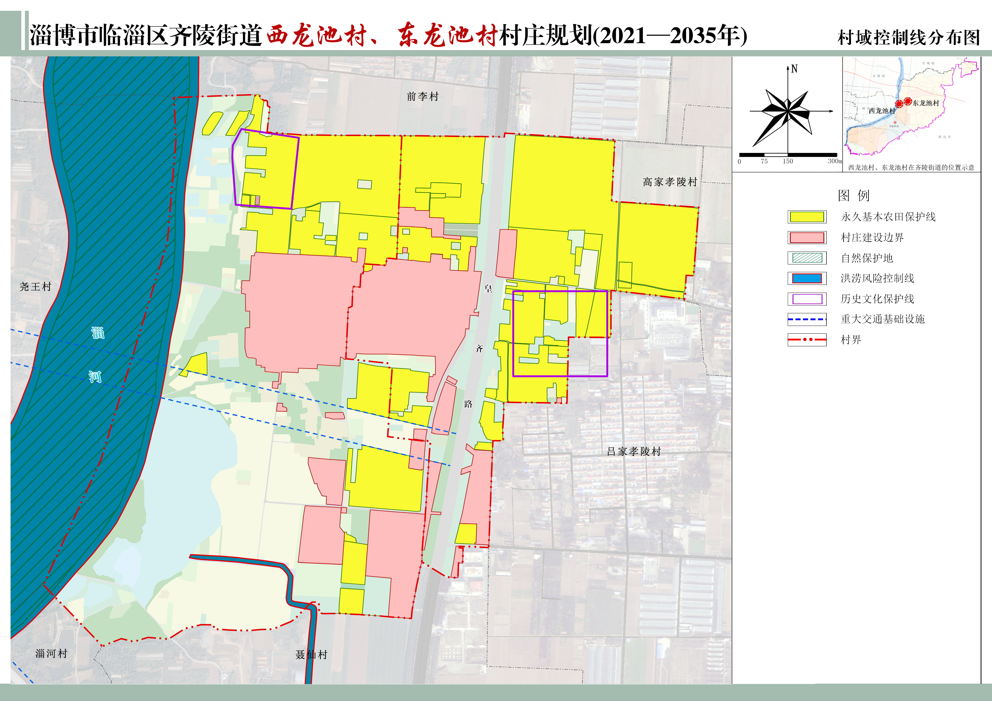 落实《淄博市国土空间总体规划(2021-2035年)》划定的洪涝风险控制线,西龙池村涉及淄河和新裙带河洪涝风险控制线。