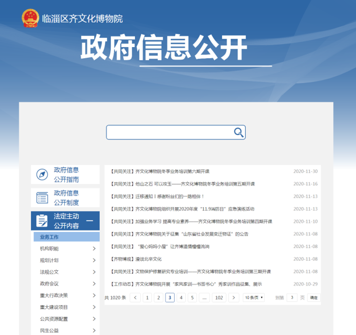 临淄区人民政府网站齐文化博物院政府信息公开截图