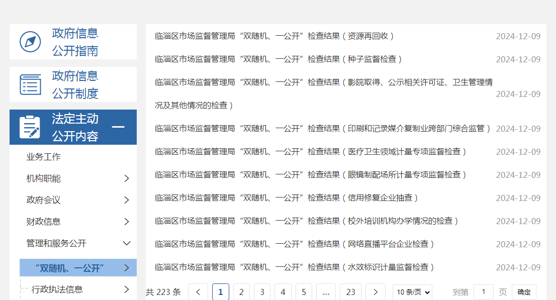 (三)年度工作要点落实情况。强化重要部署执行公开,梳理年度重点工作,主动公开区局特种设备监管、品牌建设、高质量发展等重点工作及食品抽检、药品、化妆品监管、消费维权等重点民生实事工作。2024年公示抽检信息通告17期,牢牢守住食品安全底线。主动公开行政执法结果信息,规范经营行为。做好“双随机、一公开”监管信息公示工作,发布《临淄区部门联合“双随机、一公开”监管抽查事项清单》《临淄区市场监督管理局随机抽查工作指引》,制定年度抽查计划,及时公开抽查结果信息。主动公开2024年部门预算和2023年决算,接受社会监督。