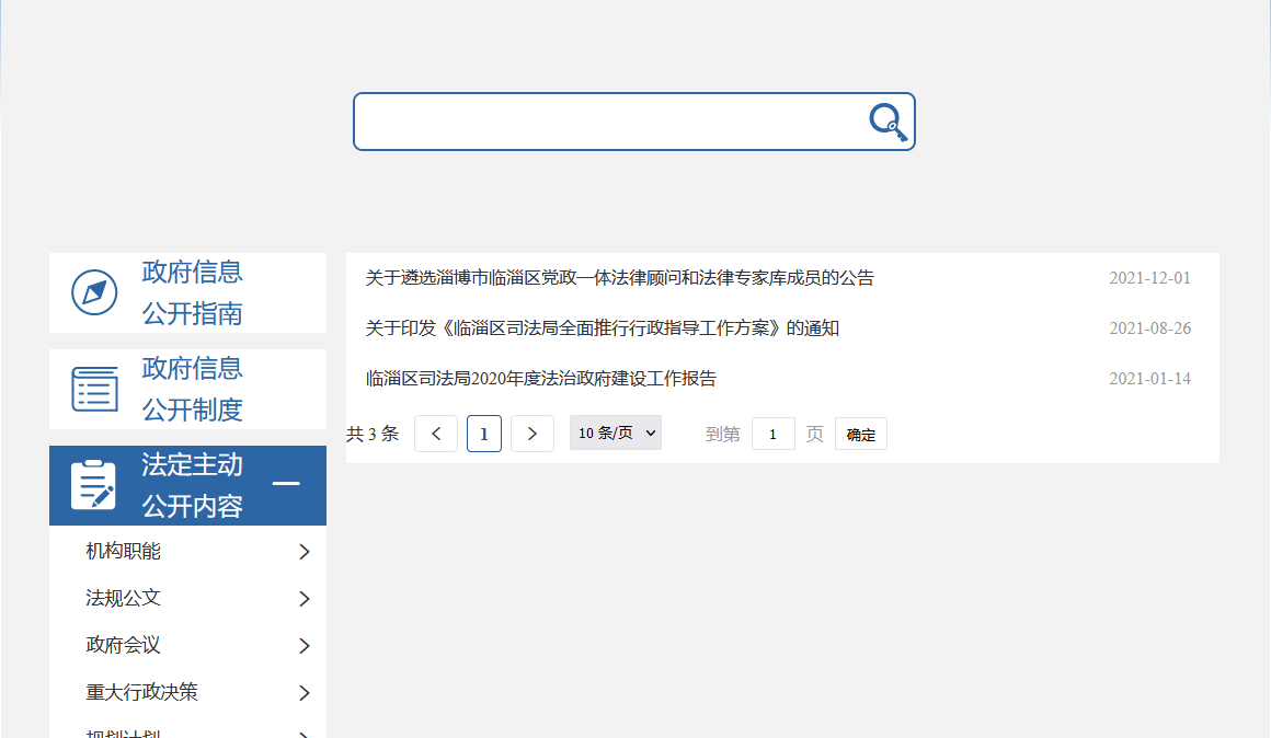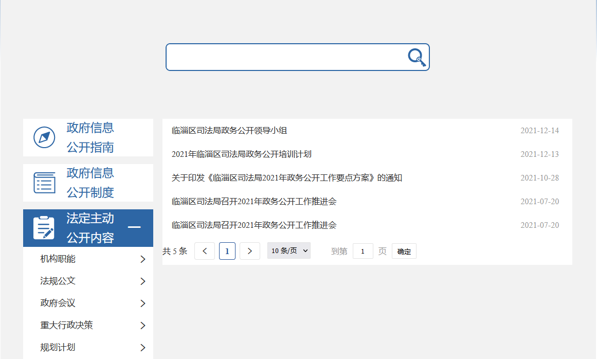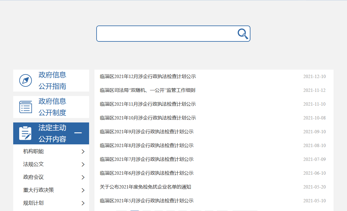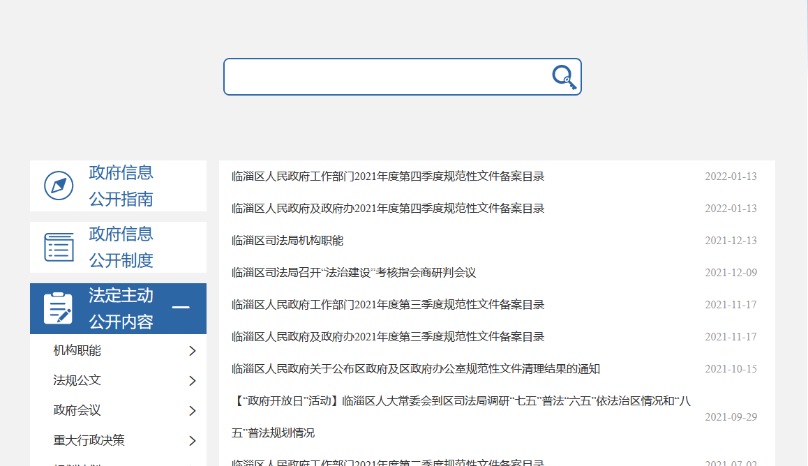 根据年度工作安排,围绕法治政府建设、公共法律服务、法治乡村建设、法治社会和法治临淄建设等,加强信息主动公开,截止2021年12月31日,主动公开政府信息238条,其中,机构职能类2条,法规公文类14条,部门会议类2条,重大行政决策类1条,规划计划类1条,民生公益类3条,行政执法监督管理类17条,法治政府建设及业务工作类198条。