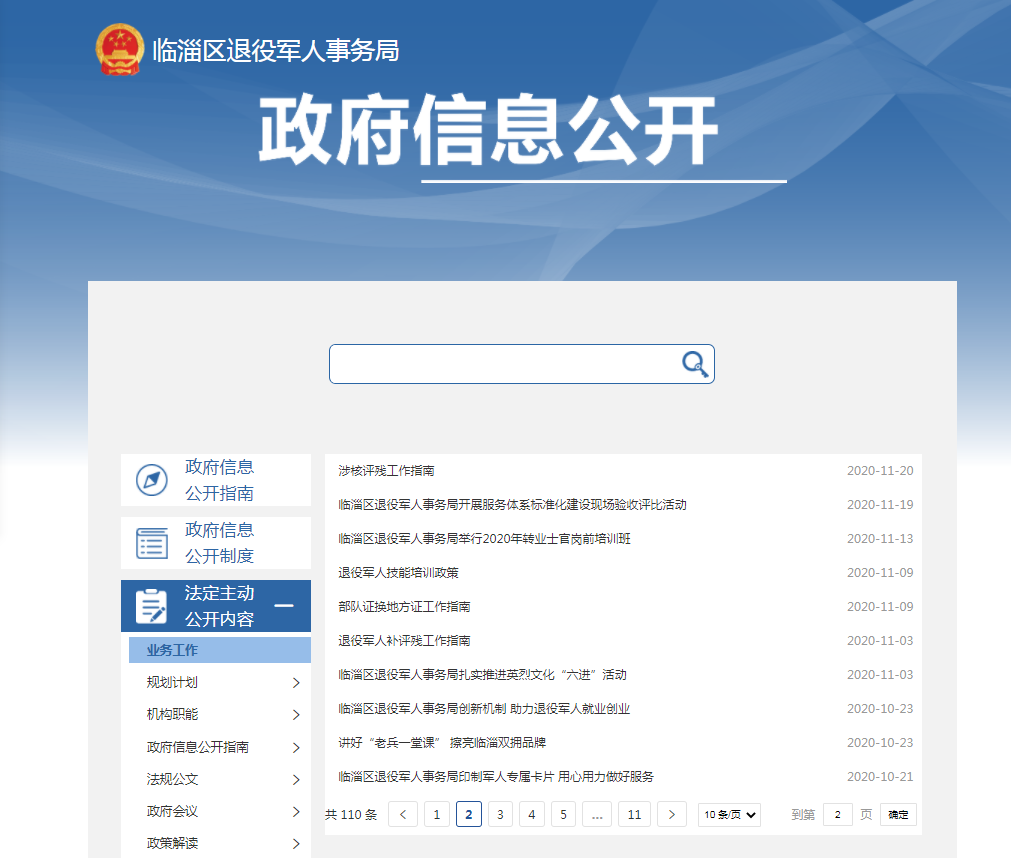 临淄区退役军人事务局政府信息公开指南