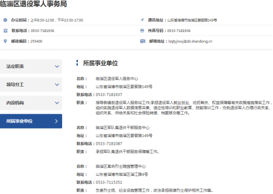 临淄区退役军人事务局政府信息公开工作机构和申请受理机构为:临淄区退役军人事务局办公室。
