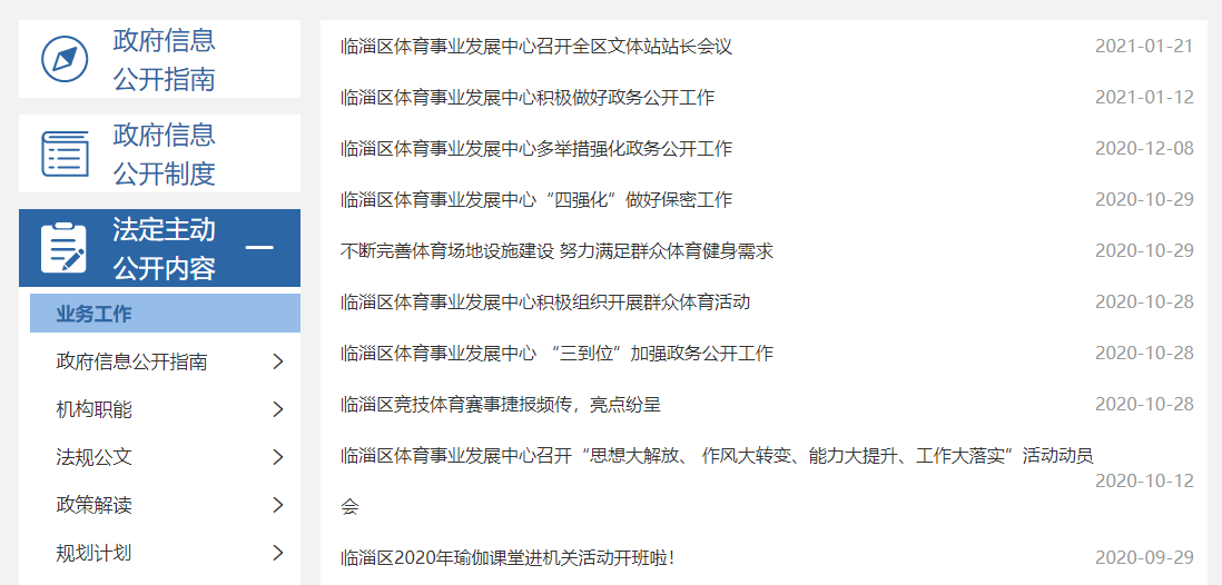 图1.区体育事业发展中心政务公开截图