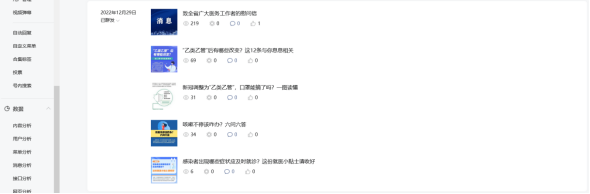 (一)主动公开方面。全平台、多渠道开展政府信息公开工作,实现载体互补和时效互补。2022年,区卫健局通过政府门户网站、“临淄卫生健康”微信公众号、“临淄卫生健康”新浪微博、临淄电视台、“今日临淄”等“传统媒体+新媒体”模式及时向广大人民群众宣传疫情防控、医疗卫生等相关法规政策,展示我区卫生健康工作尤其是品质医疗工作相关进展及取得成果,普及科学健康知识。2022年,我局在区政府网站主动公开各类信息745条,通过“临淄卫生健康”微信公众号推送我区疫情防控和医疗卫生工作进展、健康科普信息等共1079篇。